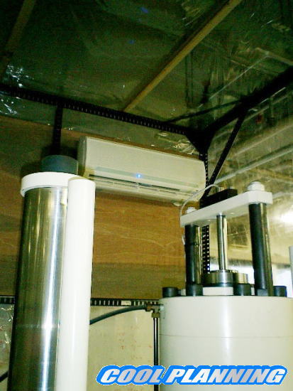 エアコン2台分の 冷媒管 を1本の 室内ダクトカバー(化粧カバー)に収納。