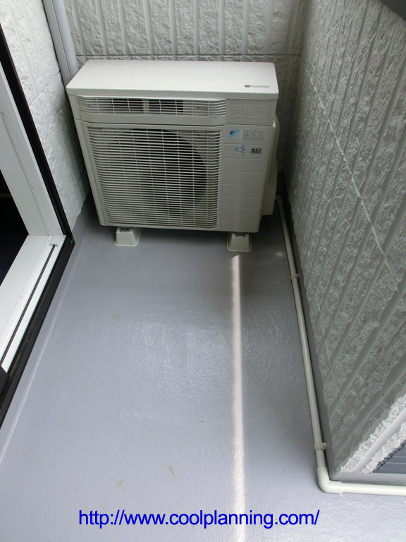 室外機を乗せる台をプラステック製ではなく、専用のコンクリートブロック